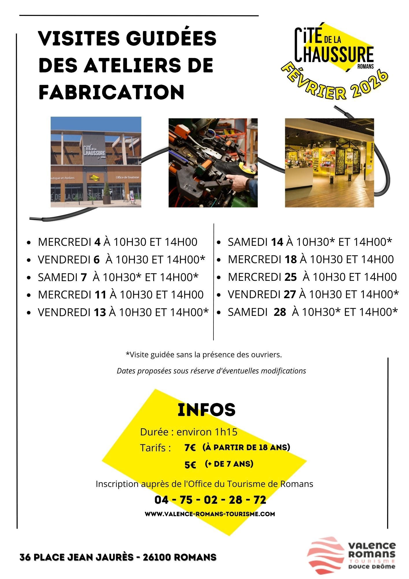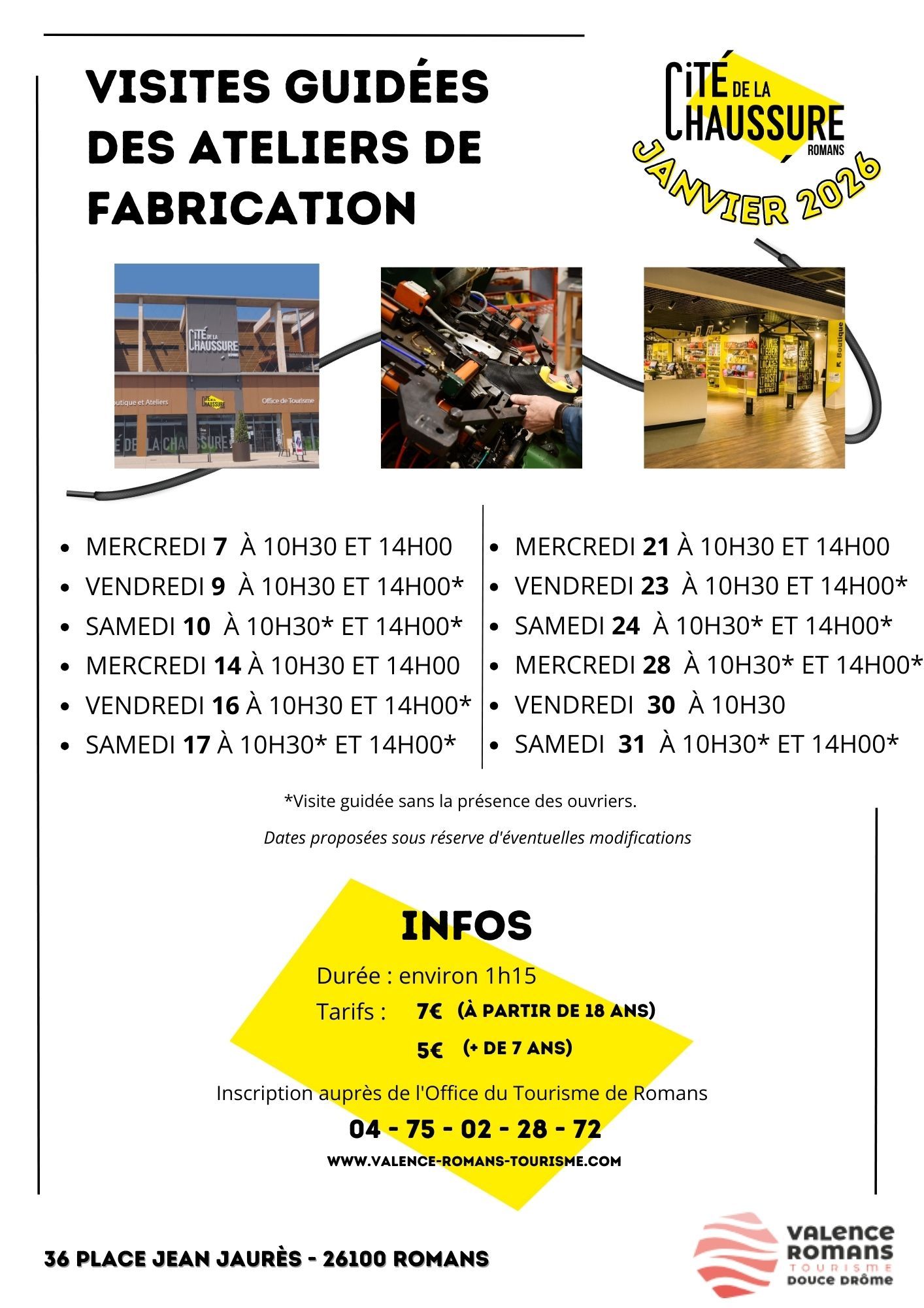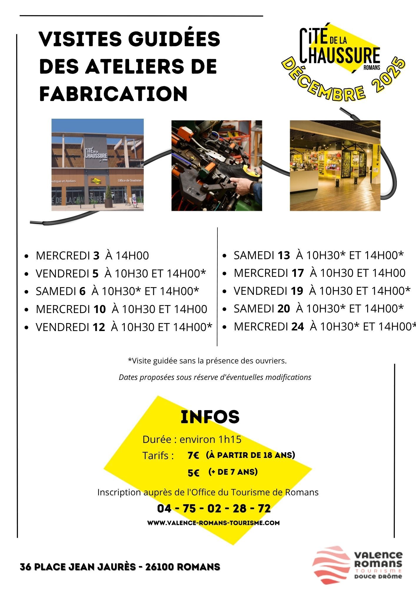 Pour vous inscrire à ces visites individuelles, contactez l'Office de Tourisme de Romans au 04.75.02.28.72